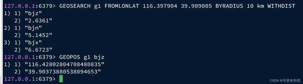 - GEORADIUS:指定圆心、半径,找到该圆内包含的所有 member,并按照与圆心之间的距离排序后返回。6.2 以后已废弃