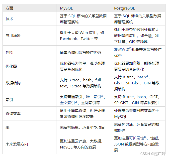 ● 开源协议:MySQL的开源协议是GPL(通用公共许可证),这意味着对MySQL进行修改的衍生产品也必须使用同一协议进行发布。而PostgreSQL的开源协议是BSD,这意味着PostgreSQL可以被商业软件使用,并且修改后的代码可以私有化。