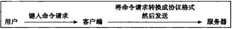Redis服务器的命令请求来自Redis客户端,当用户在客户端中键入一个命令请求时,客户端会将这个命令请求转换成协议格式,然后通过连接到服务器的套接字,将协议格式的命令请求发送给服务器,如图1-1所示