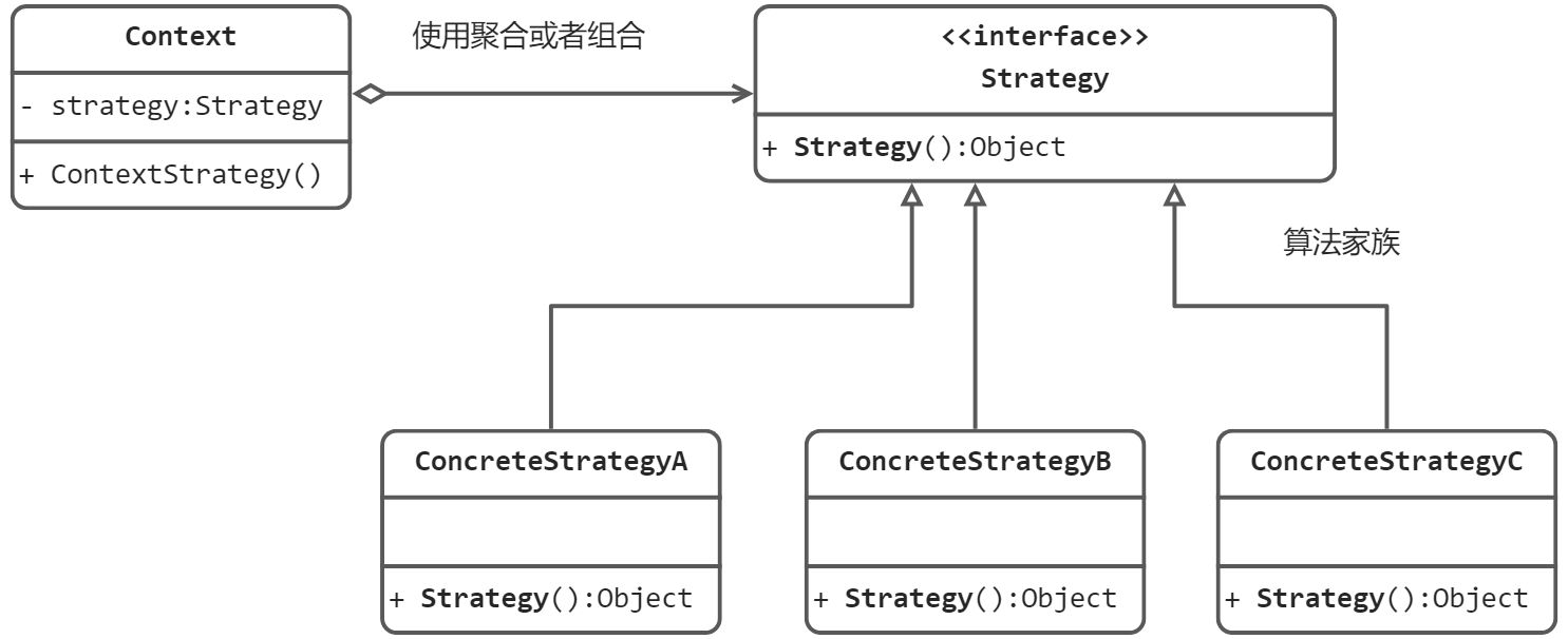 2)策略模式的核心思想是 :多用组合/聚合,少用继承;用行为类组合,而不是行为的继承。更有弹性。