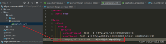 2.2.2在消费者端配置文件中添加 feign.client.url
