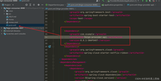 </dependencies>2.1.2编写FeignClient的接口, 并加@FeignCleint 注解