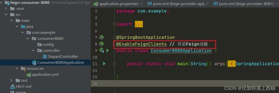 2.2.3在消费者端启动类中添加@EnableFeignClients