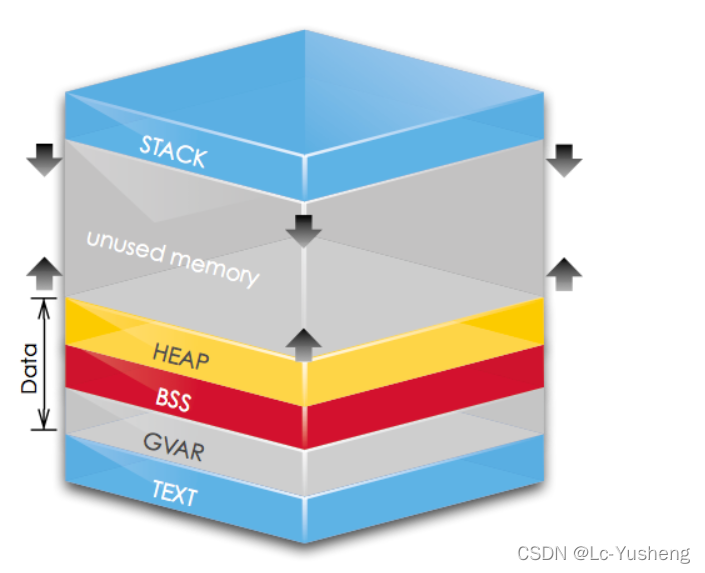 注意: 堆向高内存地址生长; 栈向低内存地址生长; 堆和栈相向而生,堆和栈之间有个临界点,称为stkbrk。