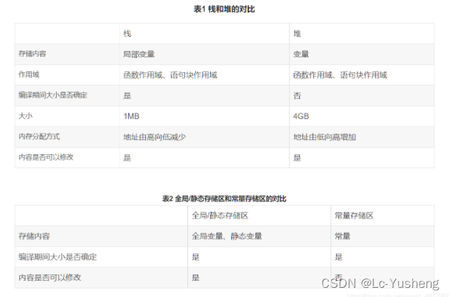 1.2、栈和堆、全局/静态存储区和常量存储区的对比