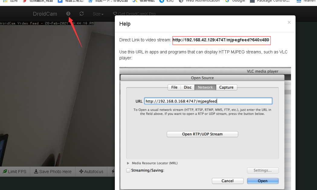 ps: 如果使用DroidCam当服务器,建议使用手机热点、或者手机通过数据线共享链接方式链接,因为MJPEG实际是把视频的每一帧截成一张图片发送过来的,非常的占带宽,并且网速不好还有图片数据不完整情况,需要手动处理跳过.手机开WiFi热点电脑链接, 手机端IP:192.168.43.1:4747,手机数据线连接usb网络共享,手机端IP:192.168.43.129:4747;