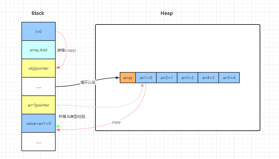 - 值类型int32进行了装箱和拆箱操作,同时进行类型转换类型的检验
