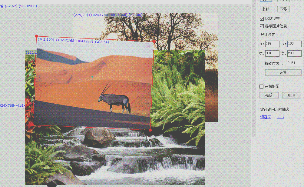 对正常的图片移动、缩放并不难。只要调整图像的长宽、位置就行,基本就是加法减法计算。如果图片有旋转,计算起来就麻烦。比如判断鼠标是否点击了图片、鼠标缩放等,实现这些操作都麻烦。