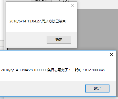 MessageBox.Show(DateTime.Now.ToString() + "," + logCount + "条日志写完了!,耗时:" + (DateTime.Now - startTime).TotalMilliseconds + "ms");