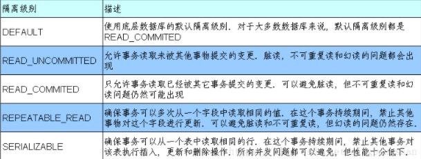 3、事务的隔离级别可以通过隔离级别事务属性(isolation)指定。