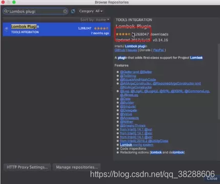 Lombok需要通过插件的形式与IDE集成,如果使用IntelliJ IDEA可直接到插件仓库搜索Lombok进行安装,最后重启IDEA。