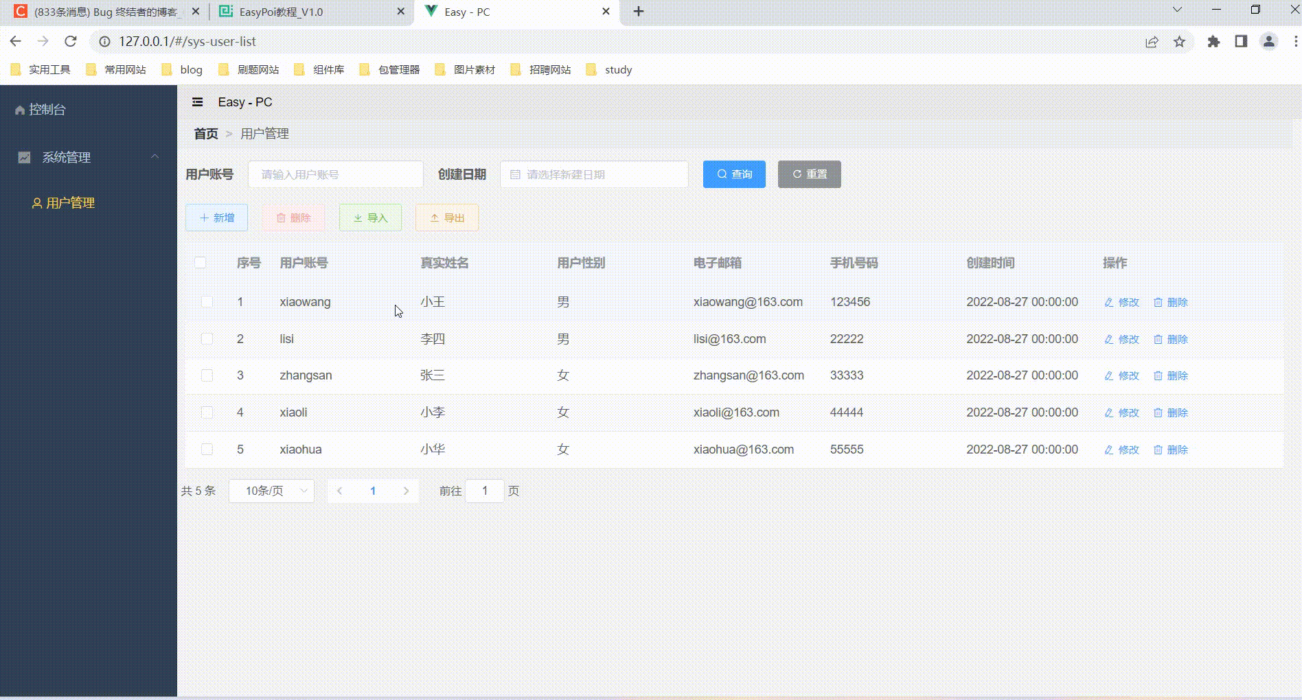以上就是【Bug 终结者】对 【前后端分离系列】 Spring Boot + Vue 实现 EasyPOI 导入导出 的简单介绍,导入导出是我们在项目中比较常用的功能,同时,前后端分离项目的开发提高了我们对技术的更深入的理解,懂得了前端和后端是如何完成的交互,以及数据的渲染等,总之,导入导出很重要,该项目也涉及到了批量删除等实战开发中比较常用的功能