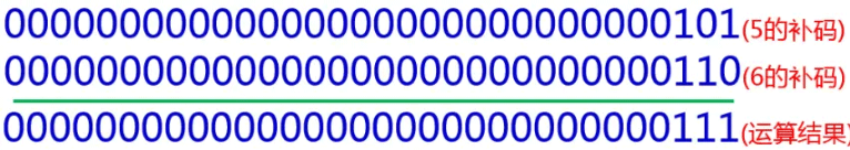 首先还是把这两个数字转换成补码形式,之后把相应的二进制位上的数字进行按位或运算:如果两个二进制数都是0,计算结果为0,其他情况计算结果均为1。按照这个规则把每一位上的数字都计算一遍后,得到二进制的运算结果是111,这个运算结果转换为十进制数是7。