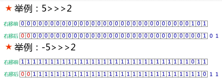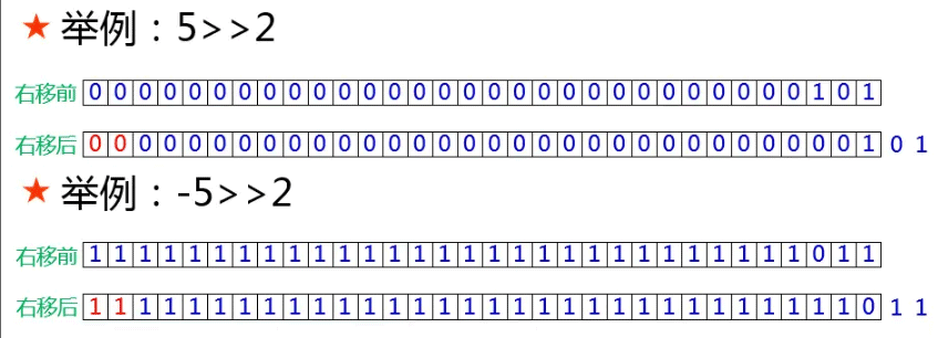 任何负数右移31后只剩符号位1,溢出的31位截断,空出的31位补符号位1,最终结果为 -1;