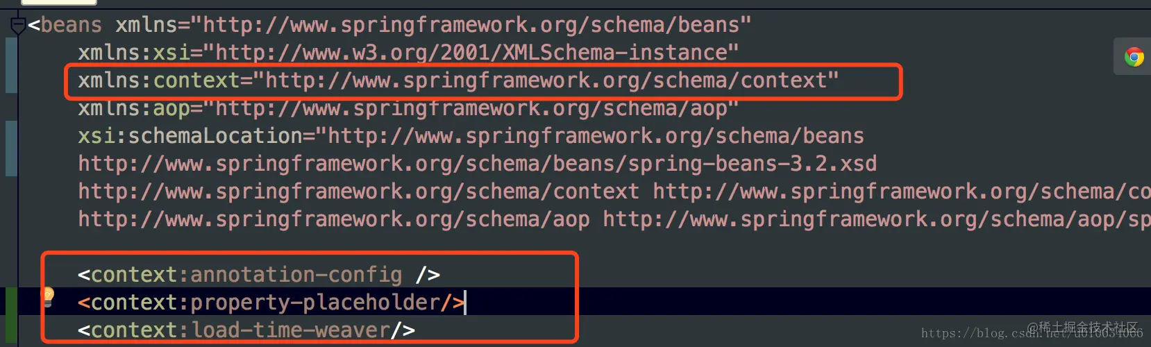 实现了NamespaceHandler中的parse()和decorate方法,并且提供一些属性来维护 具体的解析元素的对象BeanDefinitionParser; 例如:www.springframework.org/schema/cont… 命名空间对应的操作类是 ContextNamespaceHandler; 这个操作类会调用init()方法