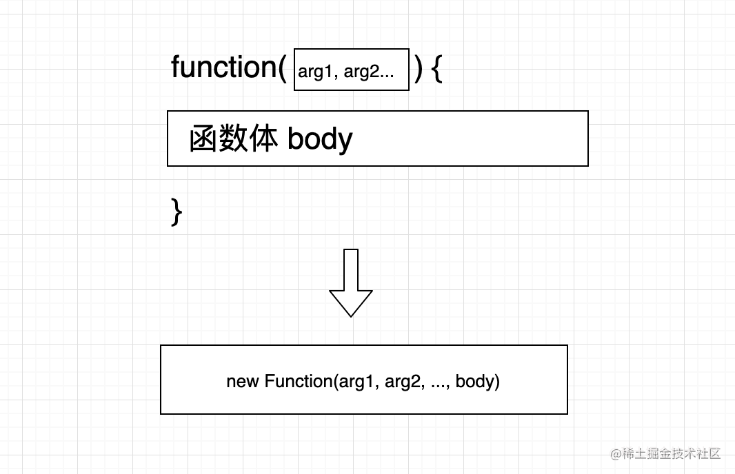 new Function 可以把字符串转换成 js 函数, 它只接受字符串参数,其可选参数为方法的入参,必填参数为方法体内容, 一个形象的例子: