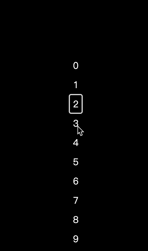 下面来介绍一下这种方案的实现,元素值从0到9一共十个值,每个数字占纵向列表的10%,所以纵向偏移值依次为为0% —> -90%