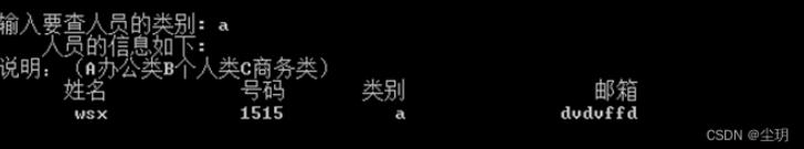 printf("\n录入格式\n姓名:\n号码:\n类别:\n邮箱:\n当输入姓名为#结束录入\n");