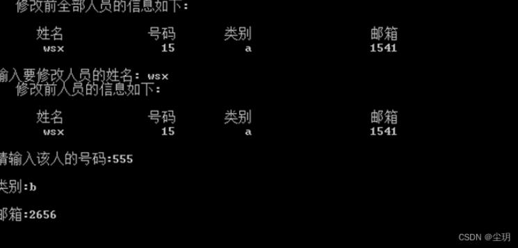//修改:输入人员的姓名,查找该人员,若找到则修改该人员的信息,并显示修改前后的结果;