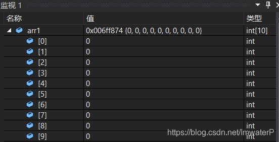通过VS调试中的监视功能,可以看到各个数组的存放结果。