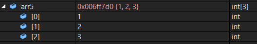 int arr5[] = {1, 2, 3};//不定义元素个数,给几个元素赋值就有几个元素。