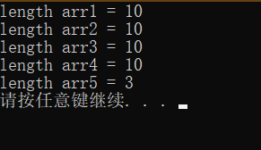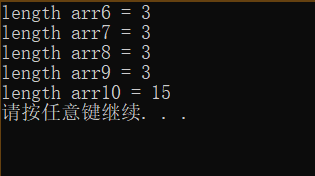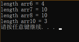 从arr7和arr8可以看出,如果定义了数组大小,跟int类型一样,不管怎么定义,定义了多少,结果都是你定义的那个数组大小。