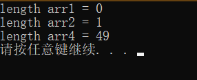 从arr10可以看出,如果你输入数组时用了大括号赋值,并且在结尾没有手动输入\0,那么算出的结果就是实际赋值的个数。