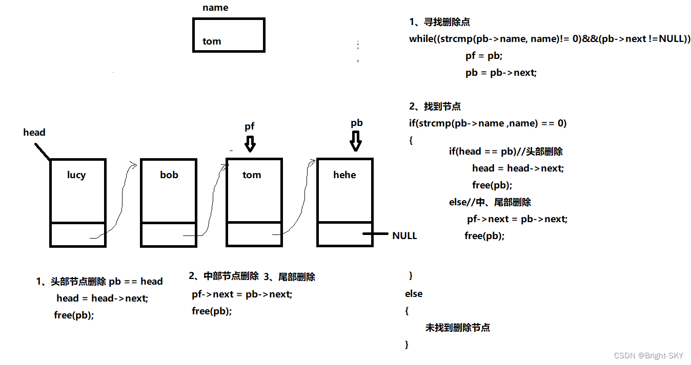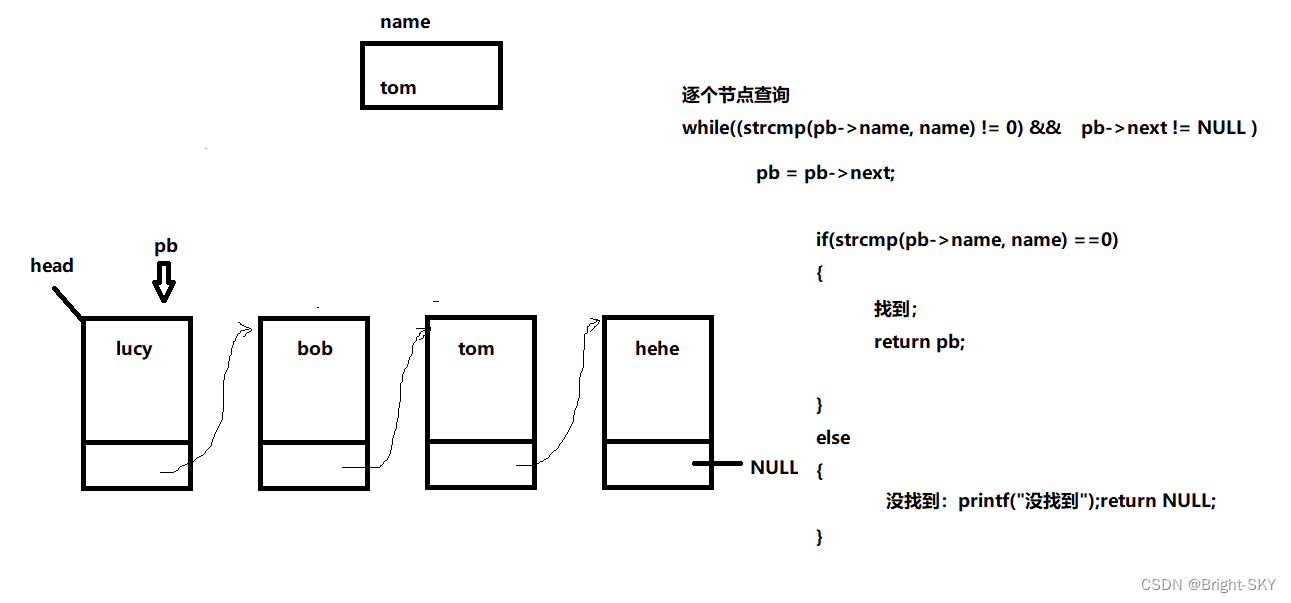 while((strcmp(pb->name, name) != 0) && (pb->next != NULL))