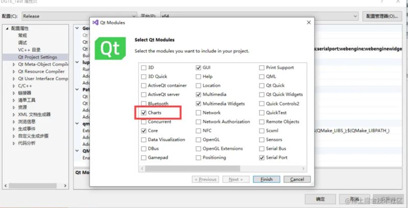 我们要在Qt中使用QChart控件,需要在项目中进行配置,效果如下:
