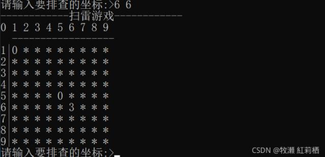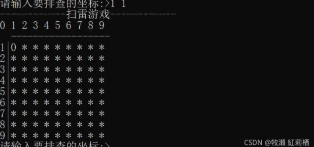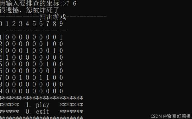 如果输入坐标位置有雷,则被炸死游戏结束~