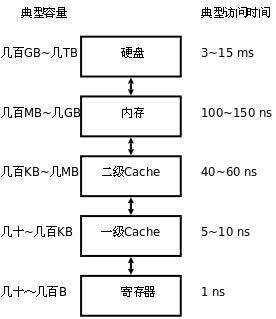 - 由于硬件技术限制,可以制造出容量很小但很快的存储器,或很大很慢的存储器,但不能造出又快又大的