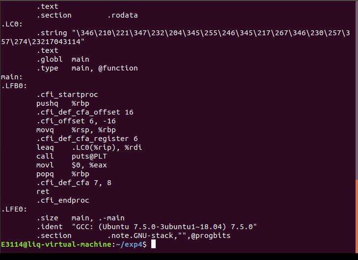 同样的我们可以用vim打开test.s文件来查看内容,也可以用命令,如cat test.s