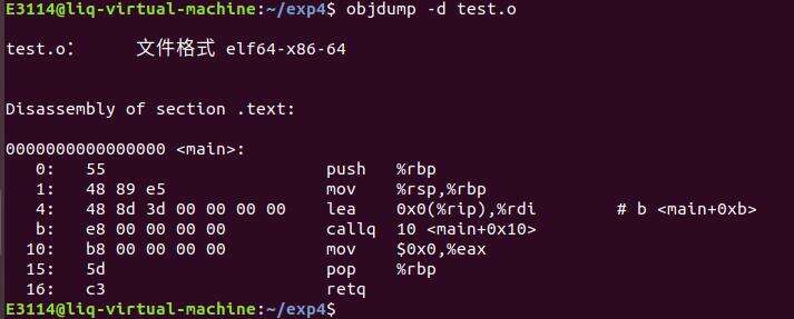 这里生成的不是文本文件了,是二进制文件,我们可以通过objdump命令来反汇编该文件来分析文件内容