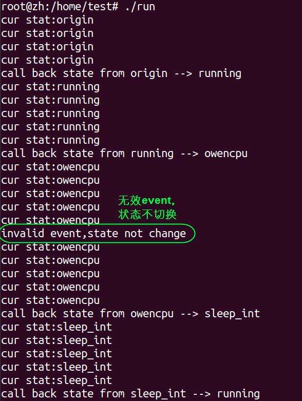 printf("invalid event,state not change\n");