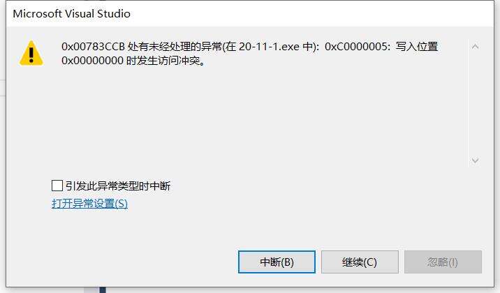 可以看到访问位置发生冲突。