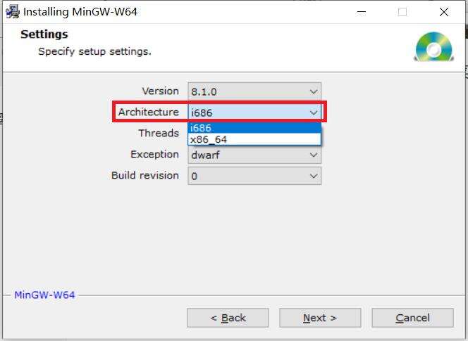 x86_64对应选择seh,i686对应选择dwarf。