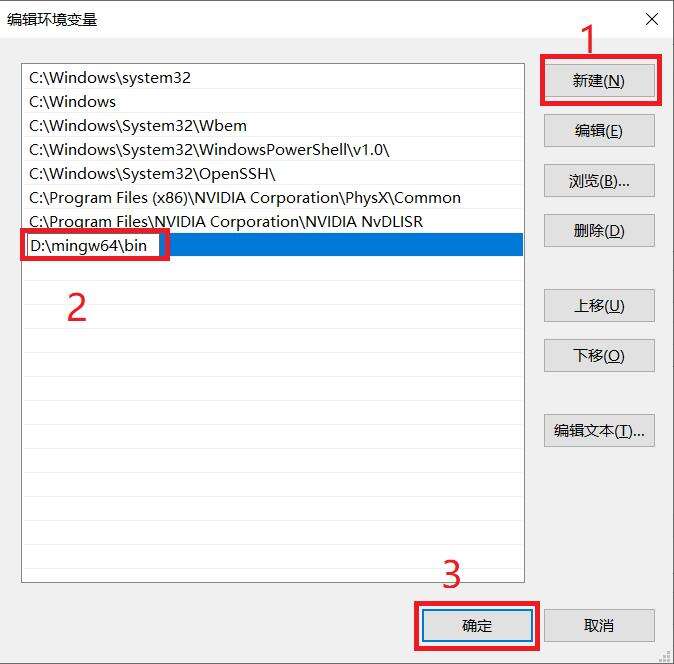 点击新建,将bin文件夹的路径粘贴到红框2的位置,点击确定即可