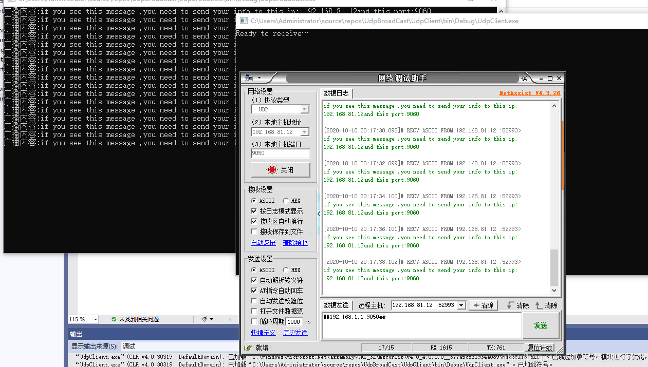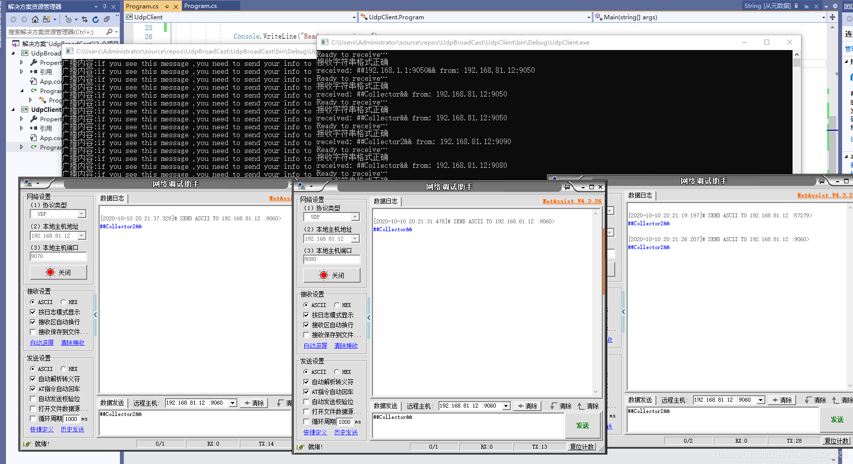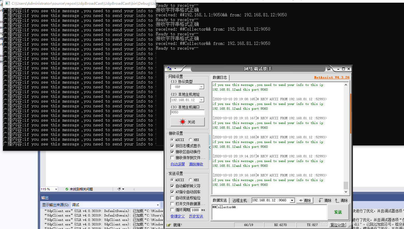一个是喊话的UdpBroadCast,一个是收集的UdpClient