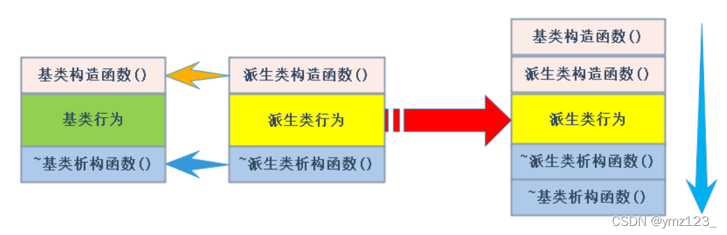 4.派生类的析构函数会在被调用完成后自动调用析构函数清理基类成员函数。因为这样才能保证派生类对象先清理派生类成员再清理基类成员的顺序。
