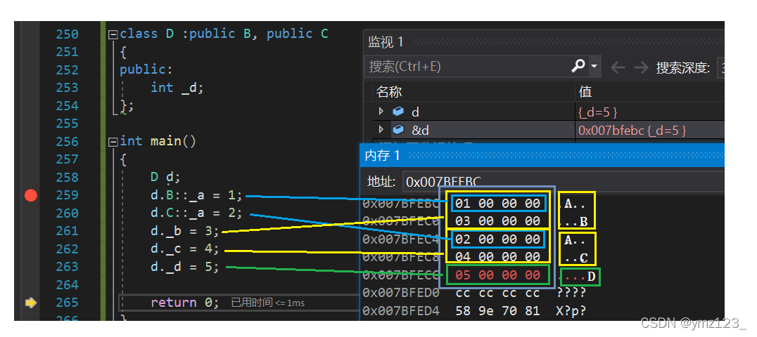 访问继承的虚基类对象成员_a,都是取偏移量计算_a的位置。B的对象、指针、引用、访问_a,都要取偏移量计算_a的位置。可以看到虚继承后,能解决菱形继承。但是同时,对象模型更复杂了;其次访问虚基类成员也要付出一定效率代价。