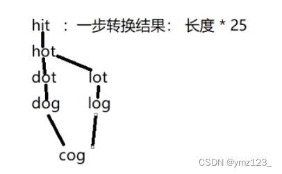 输入:beginWord = “hit”, endWord = “cog”, wordList = [“hot”,“dot”,“dog”,“lot”,“log”,“cog”]