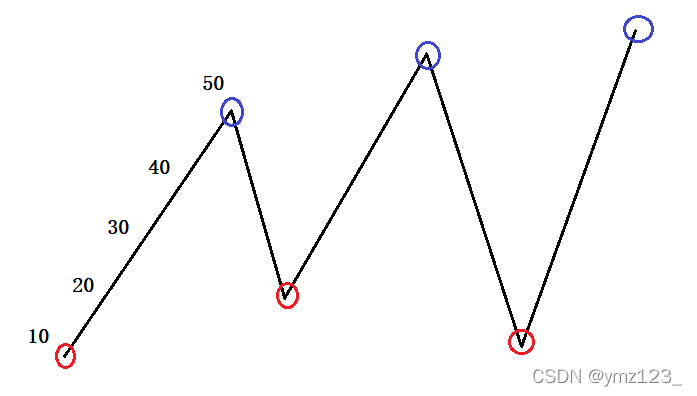 例如从10到50是连续上涨的5天,可以第一天买入,最后一天卖出,利润为40,等价于第一天买入第二天卖出,第二天再买入。。。以此类推