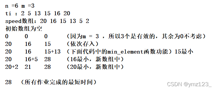 某工厂有n个独立的作业,由m台相同的机器进行加工处理。作业i所需的加工时间为ti,任何作业在被处理时不能中断,也不能进行拆分处理。现厂长请你给他写一个程序:算出n个作业由m台机器加工处理的最短时间。