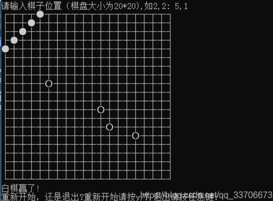 printf("请输入棋子位置(棋盘大小为20*20),如2,2: ");
