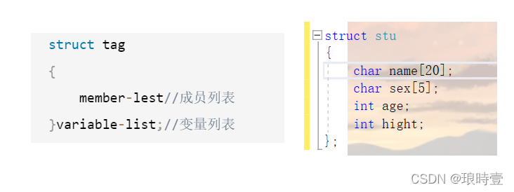 来一起描述,需要不同的变量,便有了结构体类型来描述