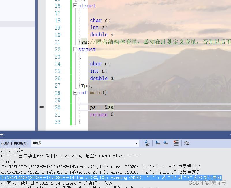 编译器认为ps和&sa是两种类型,这种写法是错误的