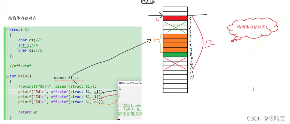 1. 第一个成员在与结构体变量偏移量为0的地址处。