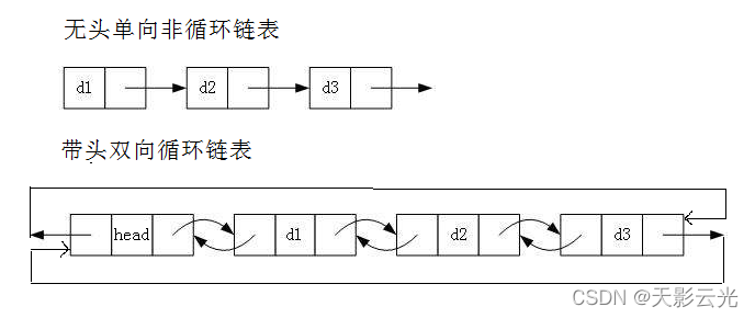 - 带头双向循环链表:结构最复杂,一般用在单独存储数据。实际中使用的链表数据结构,都是带头双向循环链表。另外这个结构虽然结构复杂,但是使用代码实现以后会发现结构会带来很多优势,实现反而简单了,后面我们代码实现了就知道了
