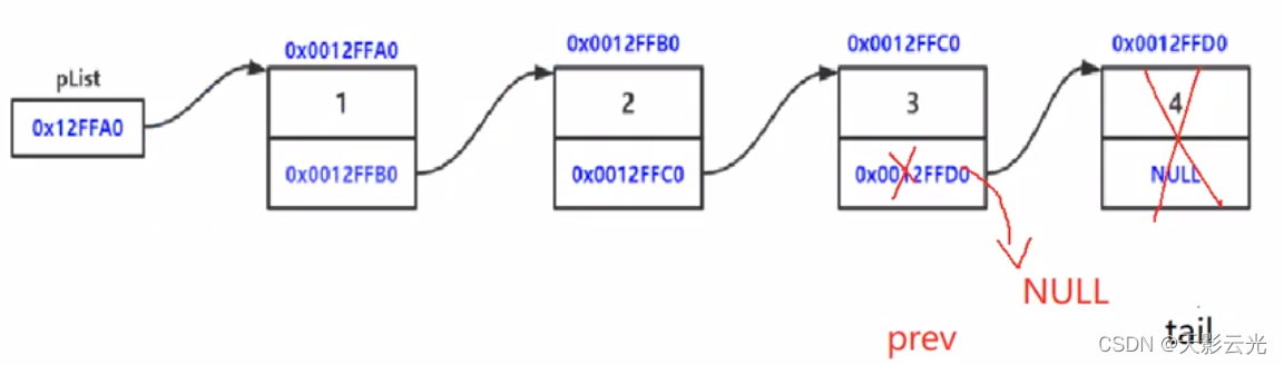prev->next = NULL;