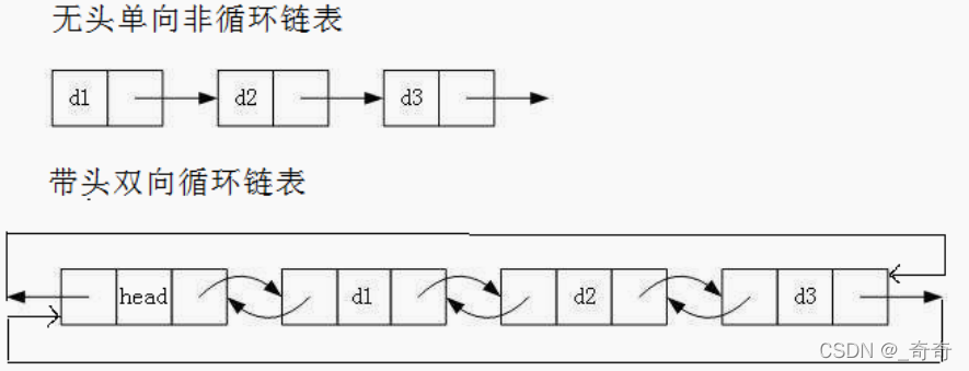 在实际生活中最常用的就是这两种链表。无头单向非循环链表。和带头双向循环链表。